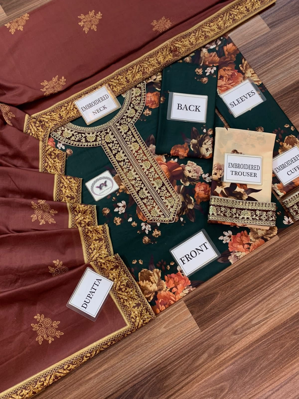 Elegant Printed Lawn Suit with Border and Cuff Embroidery